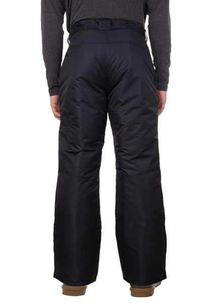 Swiss Tech offers performance and practicality in this men's ski pant. Perfect for winter sports or any cold weather activity. Insulated and made with water resistant polyester, these pants feature a side cargo pocket and adjustable velcro tabs at the waist. Features zippered fly and a plastic D-ring at waist for a lift ticket.